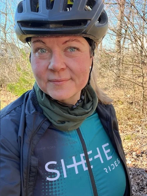 Hon hittade till She Rides 2018 via sin svägerska inför Cykelvasan, och blev snabbt tagen av den peppande gemenskapen – bara igenkänningen i klubbkläderna längs banan gjorde stort intryck. Sedan dess har hon varit aktiv i både styrelsen och utvecklingslaget, och är idag en del av She Rides Racing Collective.